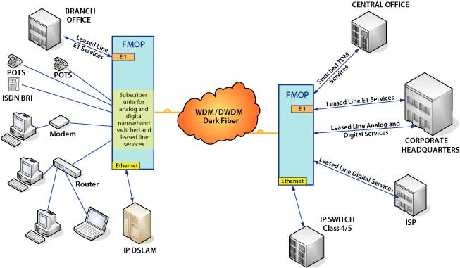 - Iznajmljene linije, tačka-tačka ili komutirani TDM servisi preneti preko optičkih vlakana