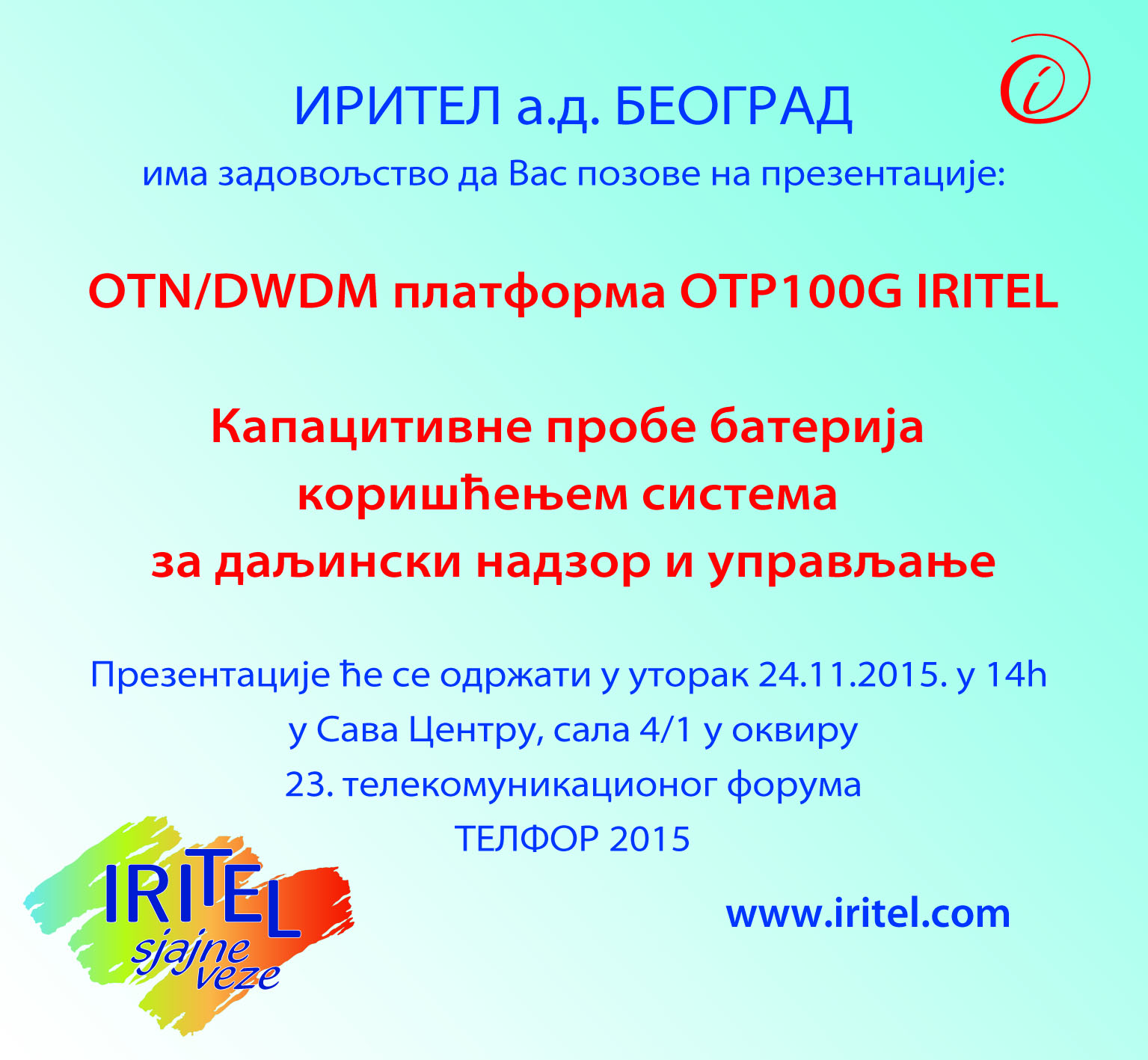 IRITEL je na prezentacijama: OTN/DWDM platforma OTP100G IRITEL i Kapacitivne probe baterija korišćenjem sistema za daljinski nadzor i upravljanje predstavio svoje proizvode i rešenja iz oblasti optičkih sistema prenosa i energetske elektronike.